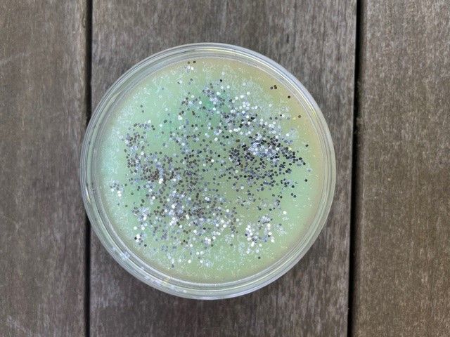 These are very special slimes. They are buttery (not sticky). They shimmer and glitter. Turn off the lights and they GLOW BRIGHT!!!